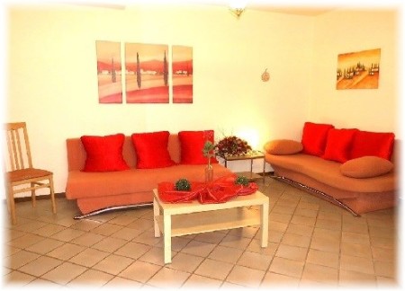 Im Wohnzimmer befinden sich ein Einzelbetten und 2 Schlafsofas.